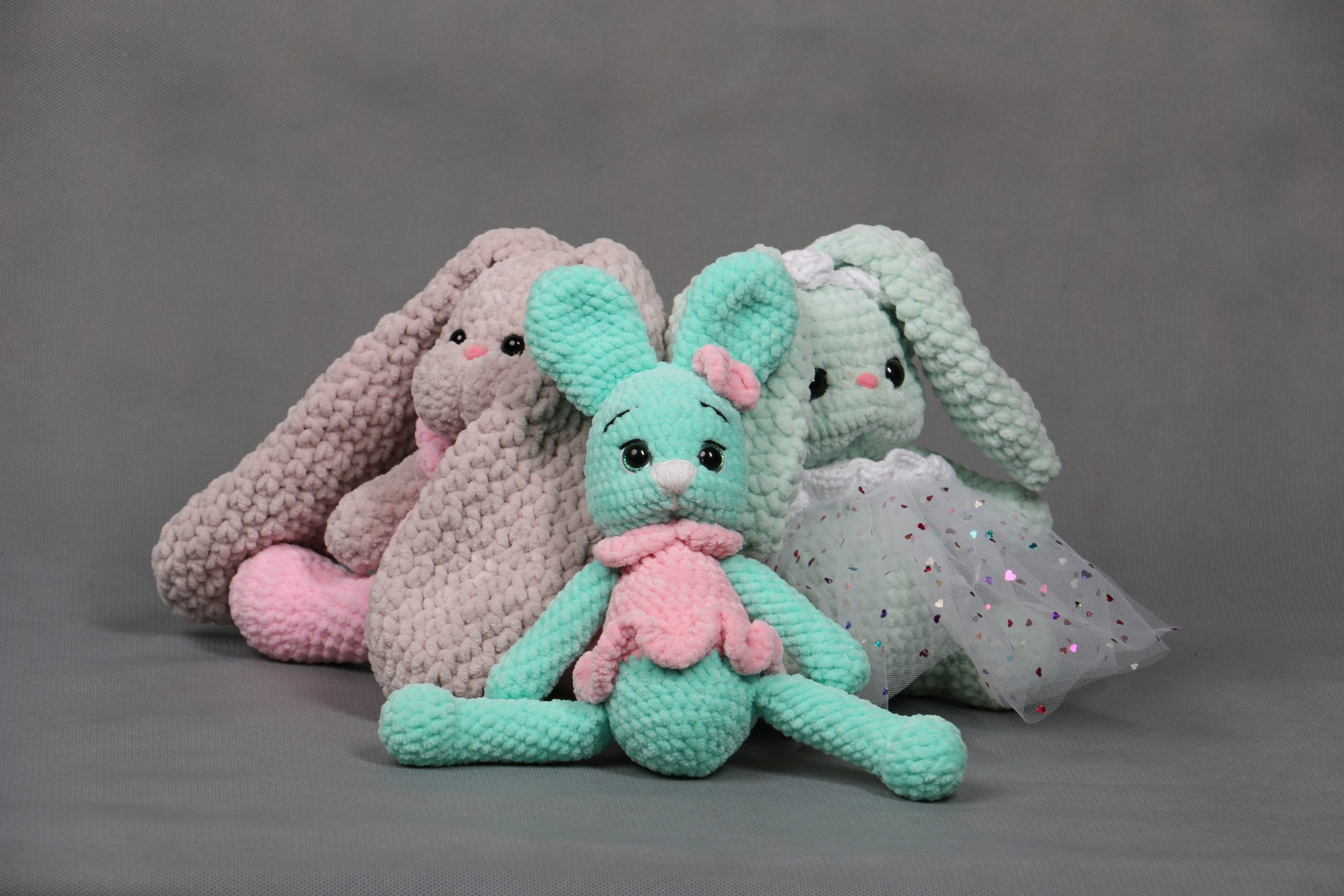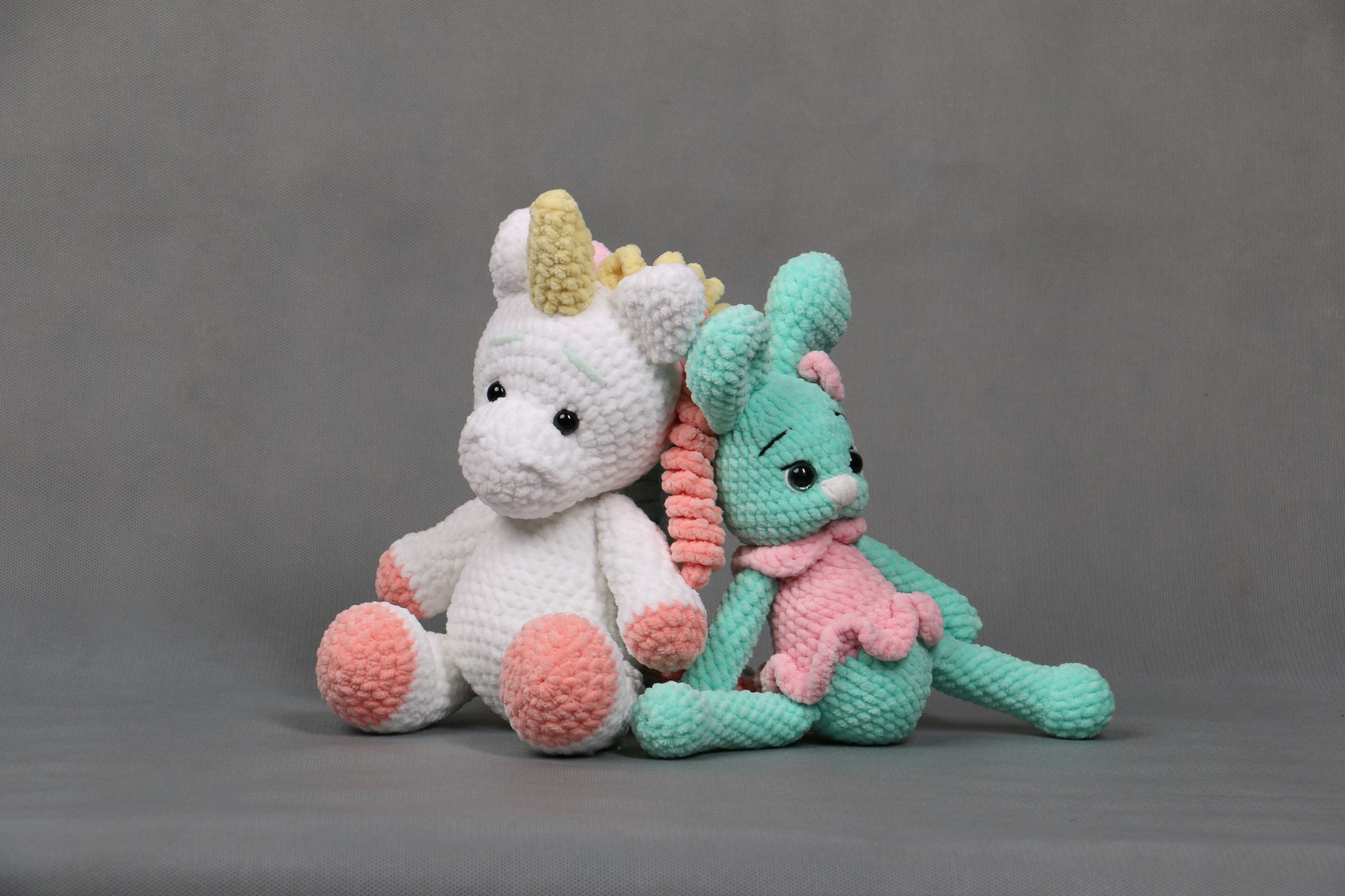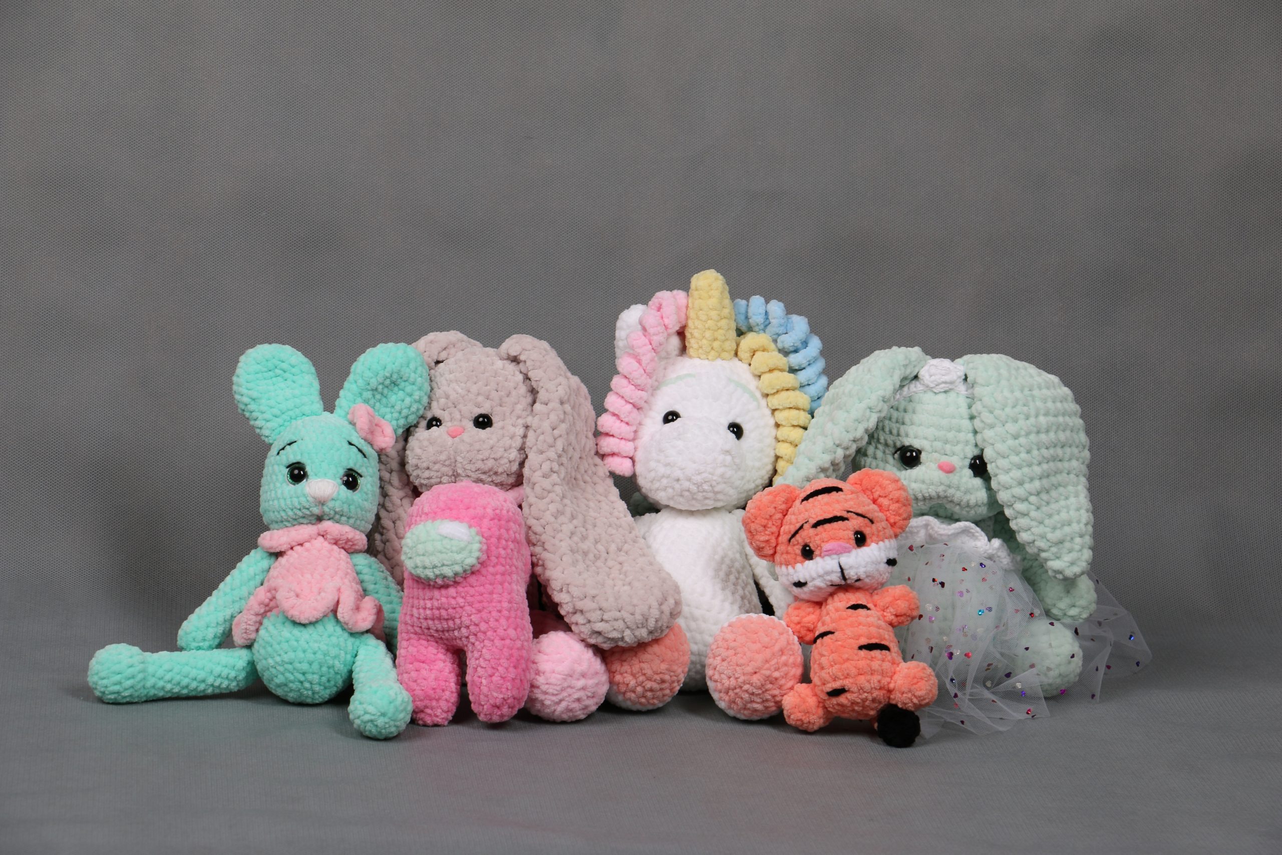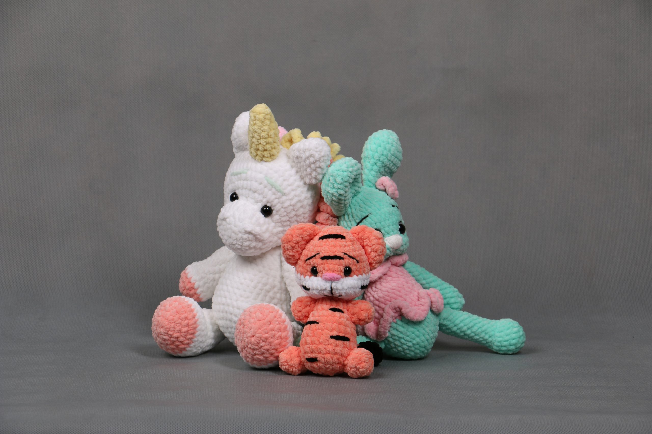 100% полиэстер, гипоаллергенный наполнитель. Игрушки мягкие и приятные на ощупь.
